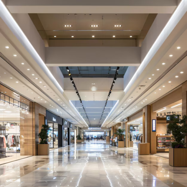 Mall layout planning focuses on walkways, common areas, and storefront visibility. Circulation paths are designed to guide visitors naturally without causing bottlenecks. Lighting and ceiling treatments help define zones, while finishes are selected to maintain consistency across large spaces without overwhelming the senses.